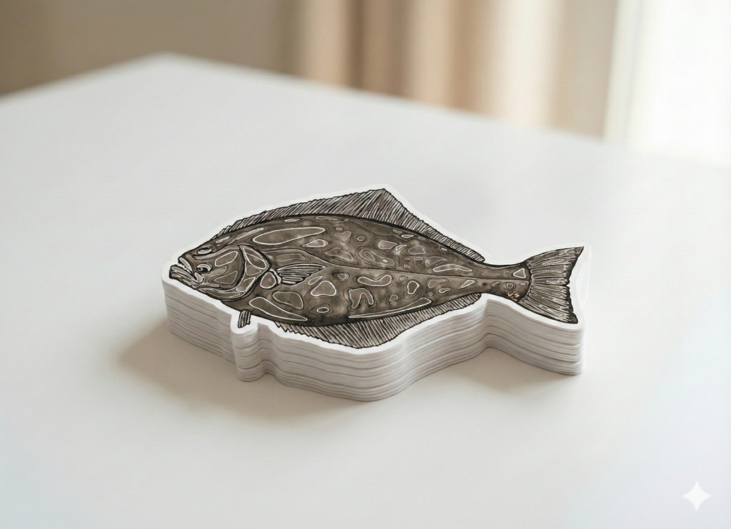 As a fisherman, the hunt for trophy halibut begins before dawn with the right bait and a feeling. These powerful Pacific flatfish demand respect, precision, and intuition. This decal is a great gift for a buddy who hasn't had the best luck in the search!